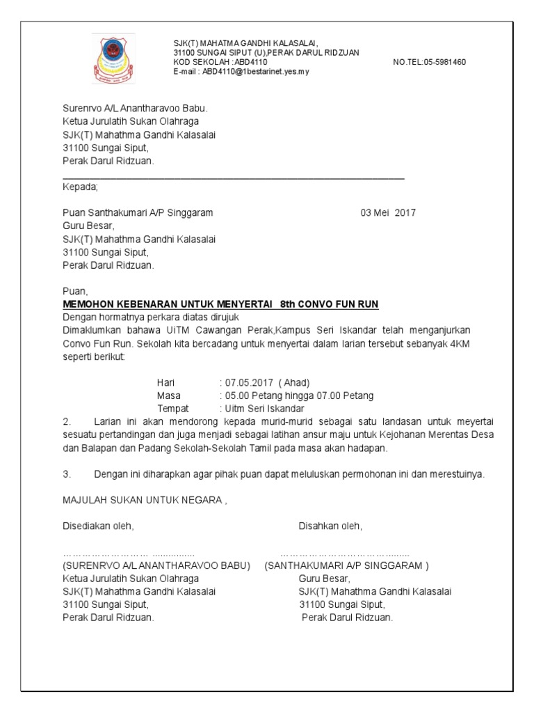 Surat Kebenaran Untuk Menyertai 86 Convo Fun Run Pdf. Berikut adalah senarai 33 contoh kertas kerja yang ada dalam pautan itu. Surat memohon kebenaran mengadakan program.